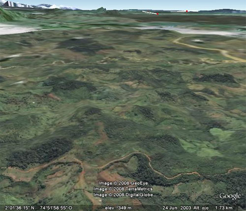 En esta imagen con los ríos y las alturas sobre la línea del Ecuador nos damos cuenta que si los Choques desbarataban en el Orteguaza la expedición y lo consiguieron, impedían a un pasito del Caquetá, que llegaran los conquistadores a los Omagua, los pobladores del sector. |